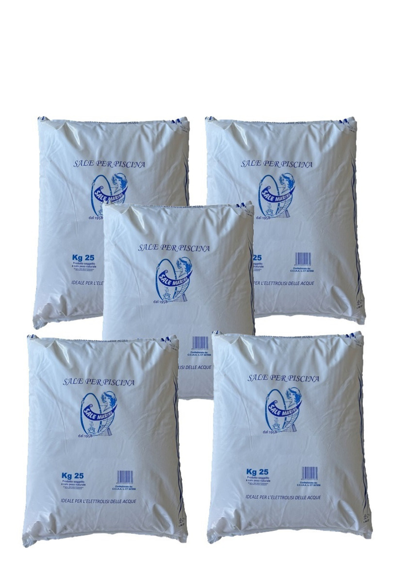 5 Sacchi di Sale non Iodato per generatore di cloro da KG 25 cloruro di sodio puro al 99,8 % per Piscina 732X366