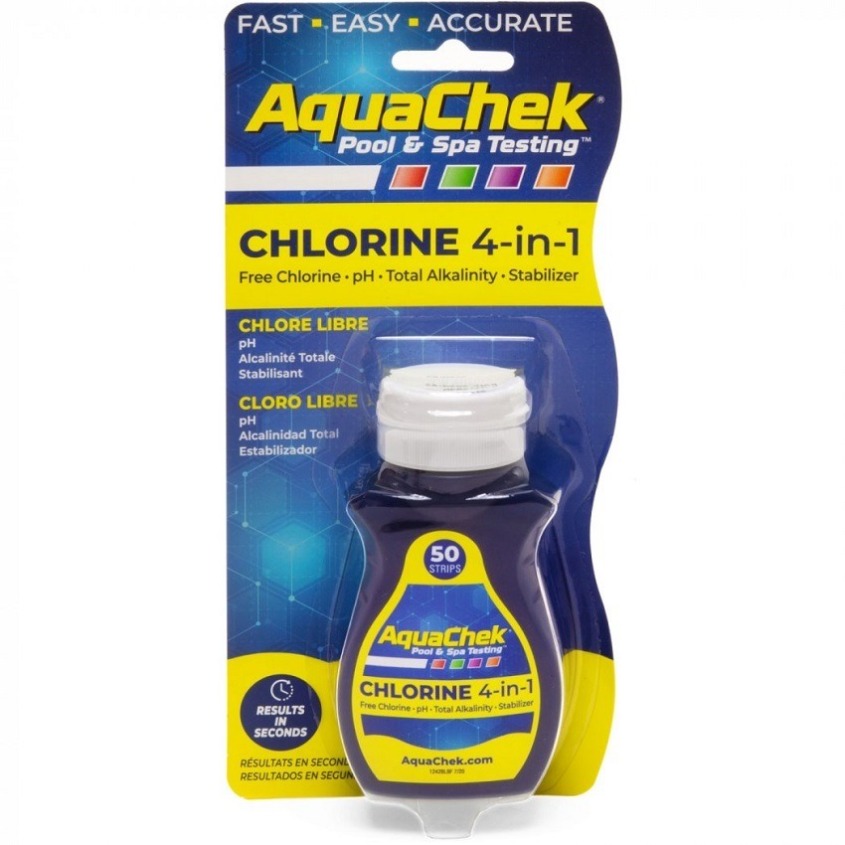 Aqua Chek Strisce Analitiche Chlorine 4-in-1 cloro libero, pH, alcalinità e controllo dell’acido cianurico.