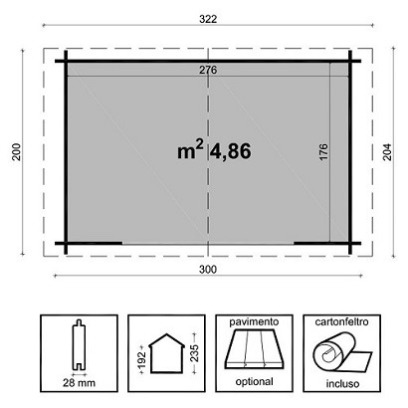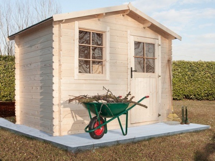 Casetta di legno in Abete grezzo non trattato Superficie Pavimento interna: mq 4,86 Altezza Massima: 235 cm