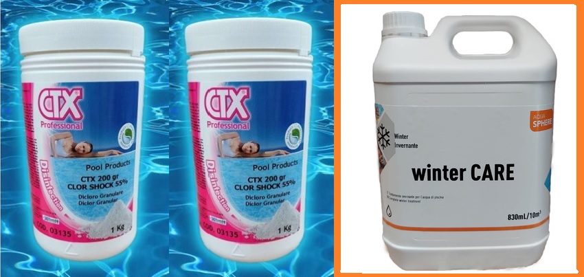 Al termine della stagione , senza aver sospeso il trattamento di mantenimento, effettuare una clorazione con dicloro granulare ( 15/mc).