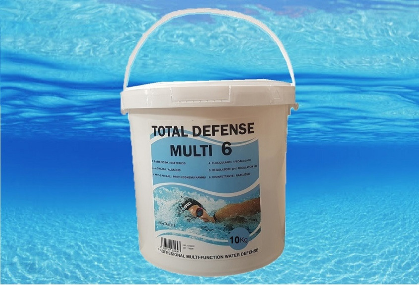 Per iniziare a sfruttare al meglio la vostra piscina, ed evitare la fastidiosa comparsa di micro-alghe ed acqua torbida, è indispensabile l' utilizzo dei Prodotti chimici (clicca qui) . Questi affiancheranno le Pompe / Filtro nella loro azione depurativa, che da sola non può bloccare la proliferazione batterica dovuta a sole, alte temperature ed agenti esterni (molte persone in acqua, zanzare, ecc.). Per mantenere sempre l'acqua in ottimo stato si consiglia dunque di trattarla con le pastiglie multifunzione TOTAL DEFENSE, un unico prodotto in grado di effettuare tutte le azioni necessarie al mantenimento dell' acqua della vostra piscina.