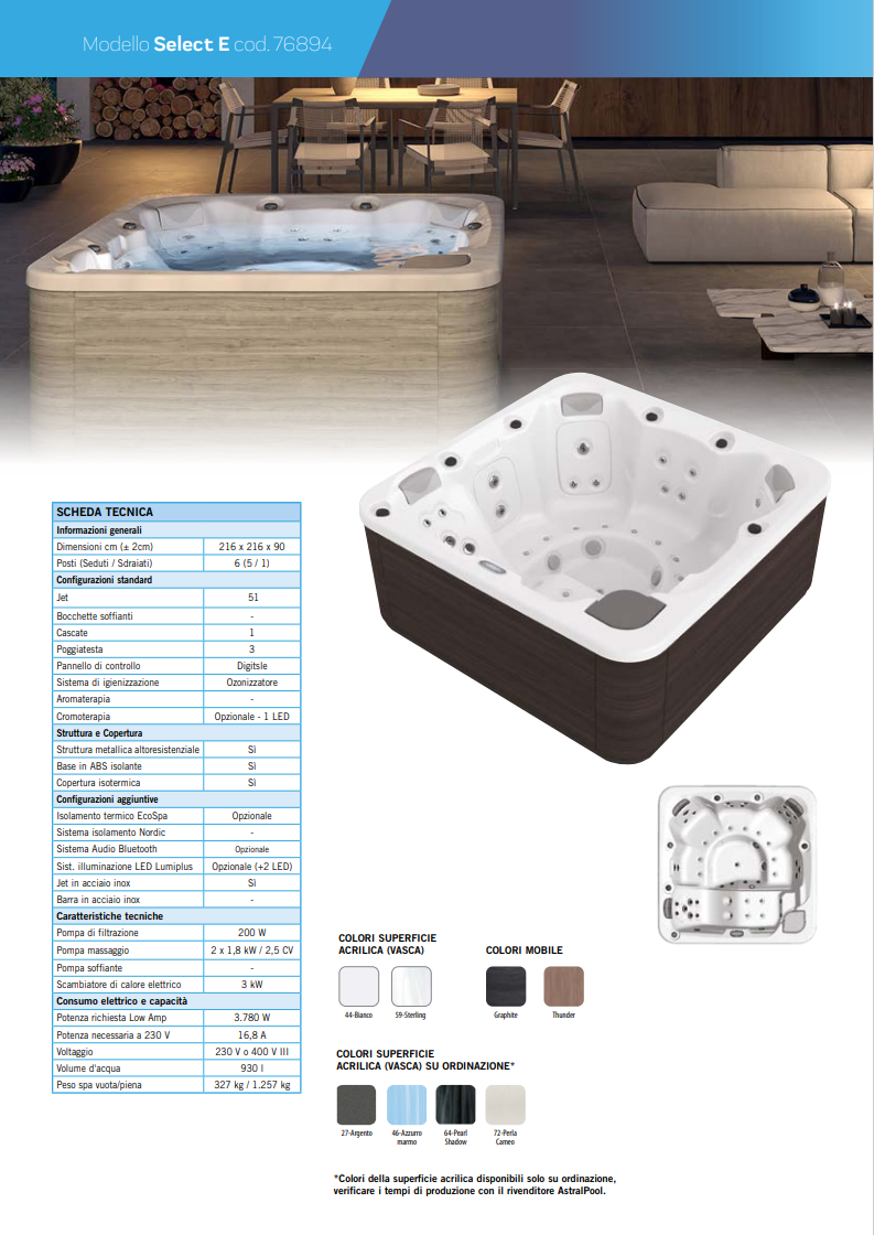 Il suo design elegante e le dimensioni ridotte renderanno questa spa un prodotto differenziato e pratico. È una spa dal design compatto e dalle linee molto raffinate, un luogo dove sciogliere le tensioni, per sentire intensamente i benefici dell'idroterapia.