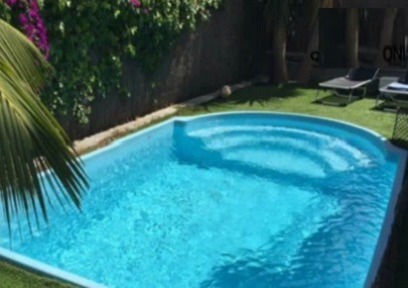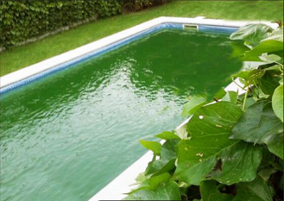 Il cloro in polvere si applica a piscine, come nella foto , in cui la presenza di alghe è visibile, oppure all' apertura e chiusura della stagione.