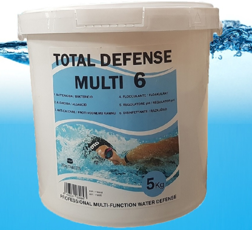 Le pastiglie grandi da 200 g del prodotto TOTAL DEFENSE sono progettate per garantire lenta solubilità: si scioglieranno lentamente garantendo il corretto apporto di cloro, flocculante, antialghe, chiarificante e regolatore di ph, sempre in maniera bilanciata ed atossica.